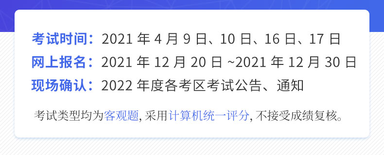 本课程适用于考试时间为2021年4月10日、11日、17日、18日的考生