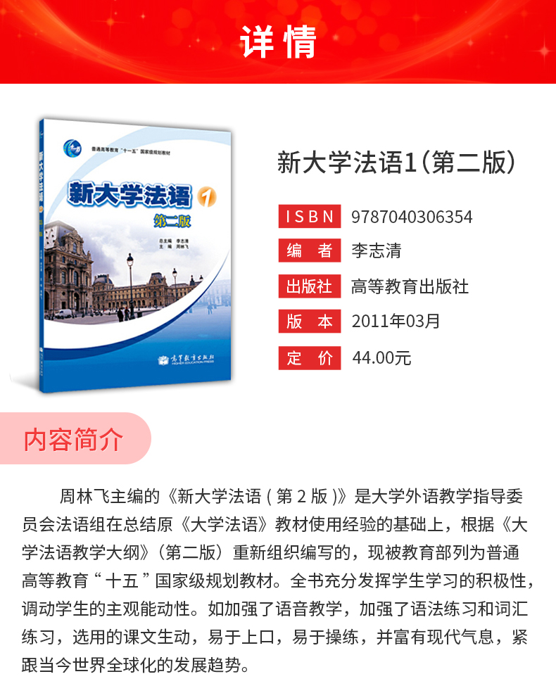 李志清《新大学法语1》(第2版)教材(高等教育出版社)