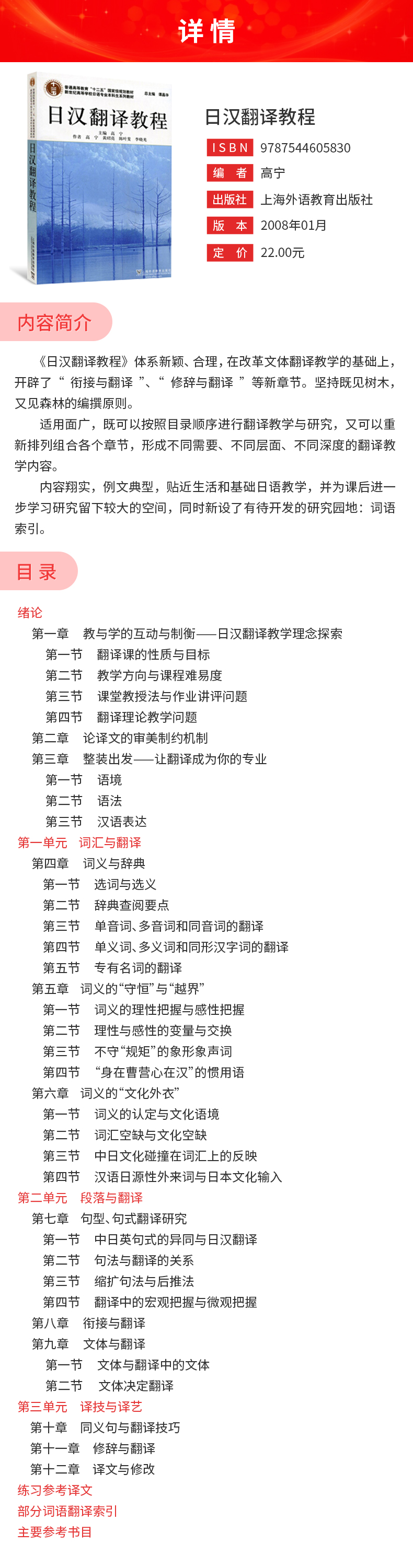 高宁《日汉翻译教程》教材(上海外语教育出版社)