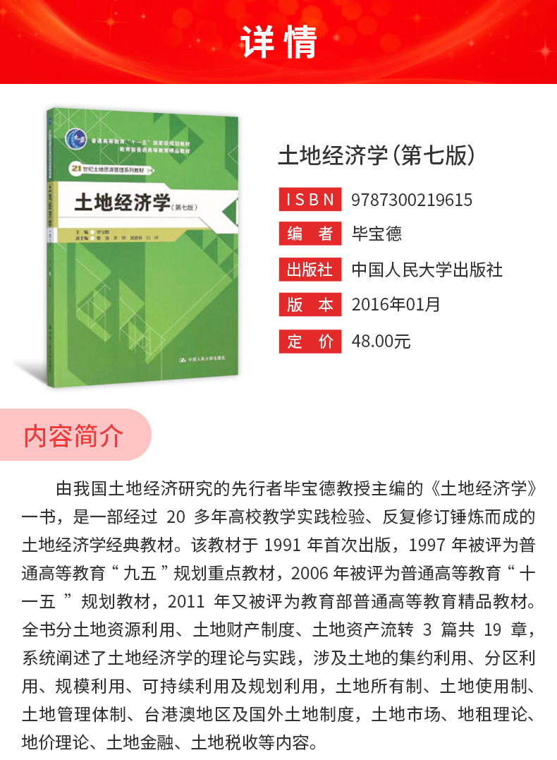 毕宝德《土地经济学》(第7版)教材( 中国人民大学出版社)