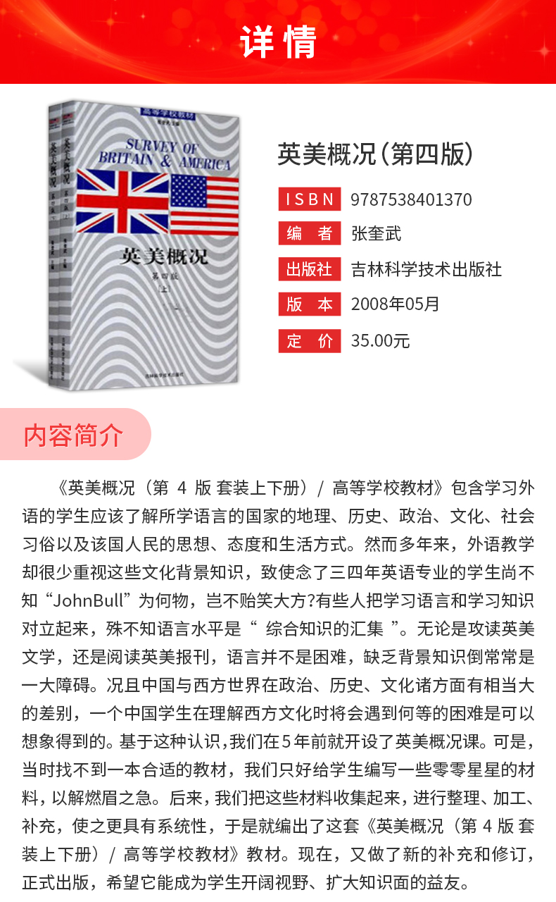 张奎武《英美概况》(第4版)教材(吉林科学技术出版社)