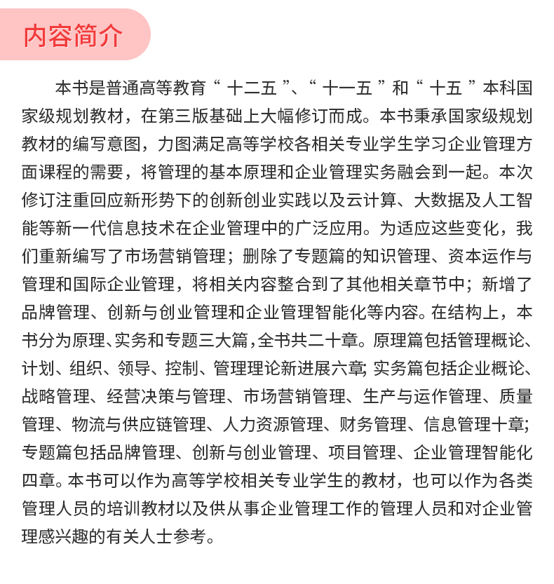 杨善林《企业管理学》(第4版)教材(高等教育出版社)