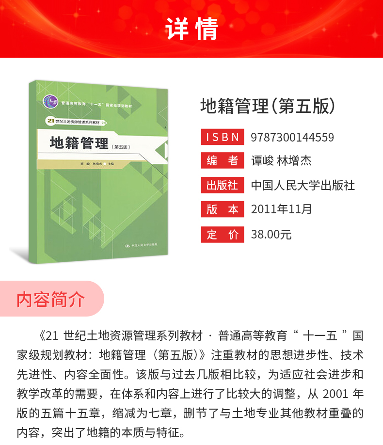 谭峻《地籍管理》(第5版)教材(中国人民大学出版社)