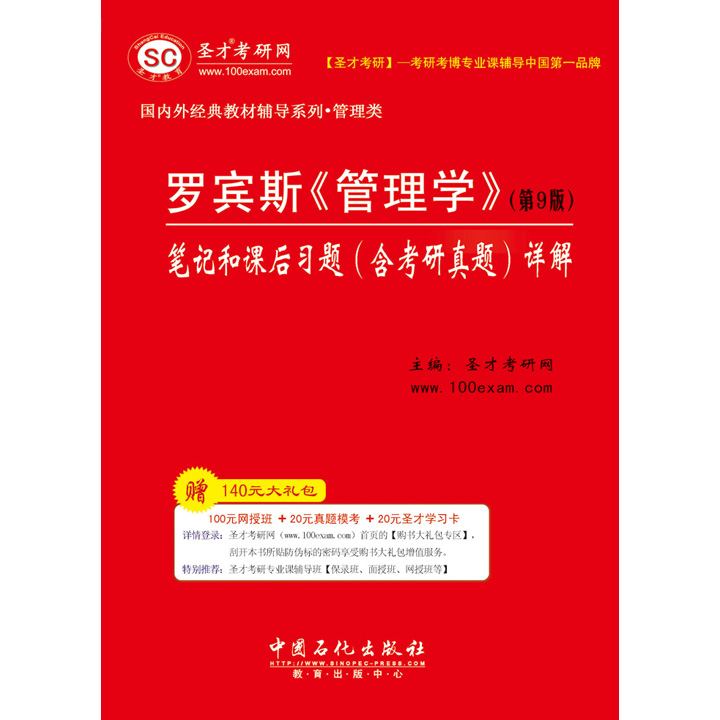 圣才学习网(www.100xuexi.com)是一家为全国各类考试和专业课学习提供名师网络辅导班、面授辅导班、在线考试等全方位教育服务的综合性学习型门户网站,包括圣才考研网、中华管理学习网、中华公共管理学习网、中华物流考试网等50个子网站。其中,中华管理学习网是一家为全国各种管理类资格考试和管理学专业课学习提供全套复习资料的专业性网站,为考生和学习者提供一条龙服务的资源,包括:网络班与面授班、在线考试、历年真题详解、模拟试题详解、专项练习、笔记讲义、视频课件、学术论文等。