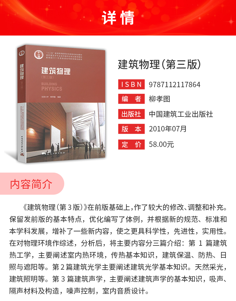柳孝图《建筑物理》(第3版)教材(中国建筑工业出版社)