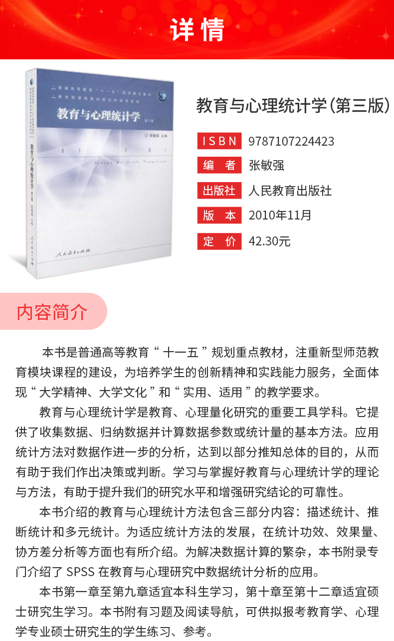 张敏强《教育与心理统计学》(第3版)教材(人民教育出版社)
