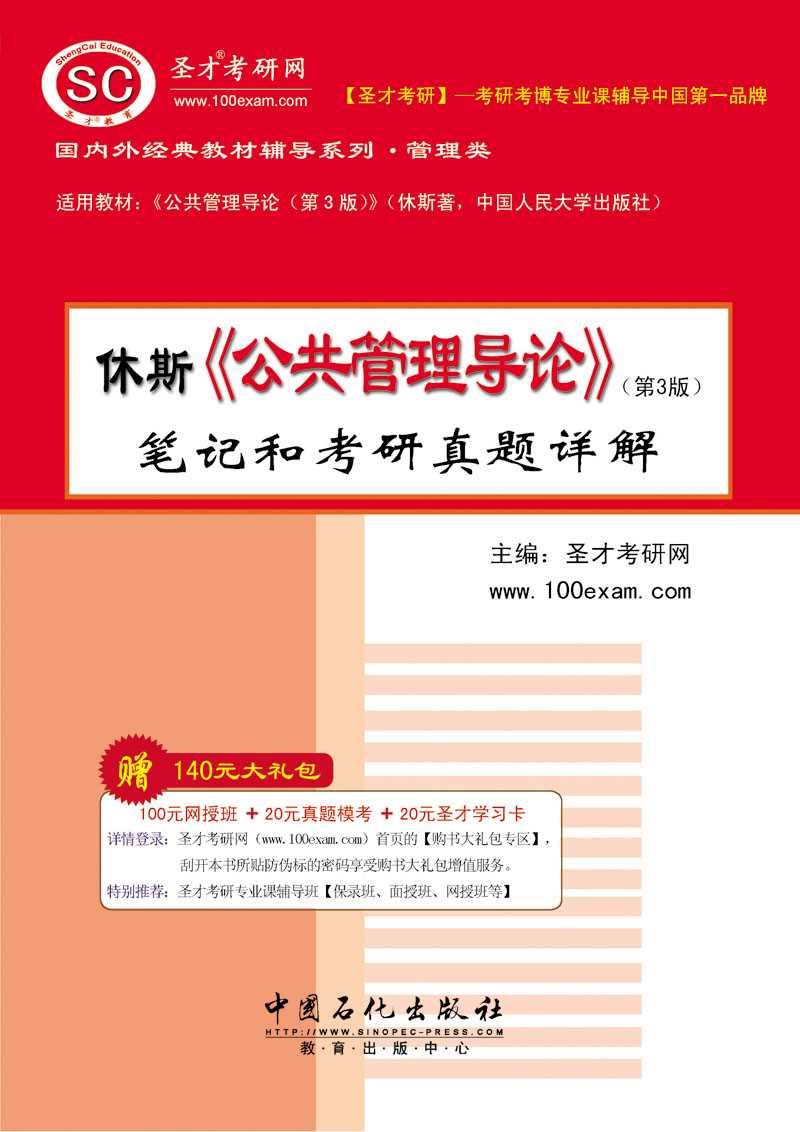圣才考研网(www.100xuexi.com)提供全国所有高校各个专业的考研考博辅导班(保过班、面授班、网授班等)、国内外经典教材名师讲堂(详细介绍参见本书书前彩页)。购书享受大礼包增值服务【100元网授班+20元真题模考+20元圣才学习卡】。本书特别适用于各大院校学习该教材的师生以及在硕士和博士研究生入学考试中参加公共管理学科目考试的考生。