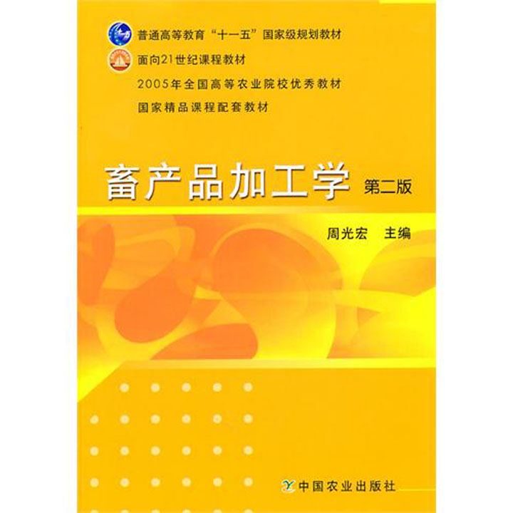 《畜产品加工学》自2002年出版以来,被相关高等院校广泛采用,受到师生好评,已多次印刷,本教材获得中国农业科教基金会“2005年全国高等农业院校优秀教材”奖,并配套出版了《畜产品加工学实验指导》。