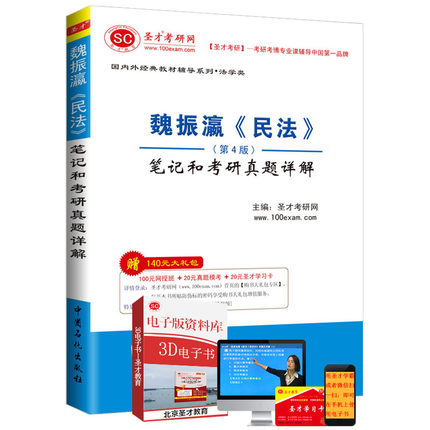圣才考研网(www.100xuexi.com)是圣才学习网旗下的考研考博专业网站,提供全国所有院校各个专业的考研考博辅导班【保过班、一对一辅导、网授班、题库、光盘、视频课程(图书)等】、魏振瀛《民法》等国内外经典教材名师讲堂、考研题库(免费下载、免费升级)、全套资料(历年真题及答案、笔记讲义等)、考研教辅图书等。购书享受大礼包增值服务【100元网授班+20元真题模考+20元圣才学习卡】。
