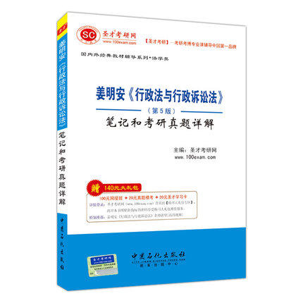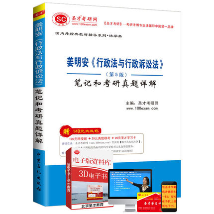 圣才考研网(www.100xuexi.com)是圣才学习网旗下的考研考博专业网站,提供全国所有院校各个专业的考研考博辅导班【保过班、一对一辅导、网授班、题库、光盘、视频课程(图书)等】、姜明安《行政法与行政诉讼法》等国内外经典教材名师讲堂、考研题库(免费下载、免费升级)、全套资料(历年真题及答案、笔记讲义等)、考研教辅图书等。购书享受大礼包增值服务【100元网授班+20元真题模考+20元圣才学习卡】。