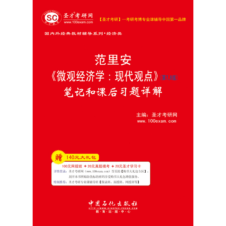 圣才考研网(www.100xuexi.com)是圣才学习网旗下的考研考博专业网站,提供全国所有院校各个专业的考研考博辅导班(保过班、面授班、网授班等)、范里安的《微观经济学:现代观点》等经典教材名师讲堂、考研题库(在线考试)、全套资料(历年真题及答案、笔记讲义等)、考研教辅图书等。购书享受大礼包增值服务【100元网授班+20元真题模考+20元圣才学习卡】。