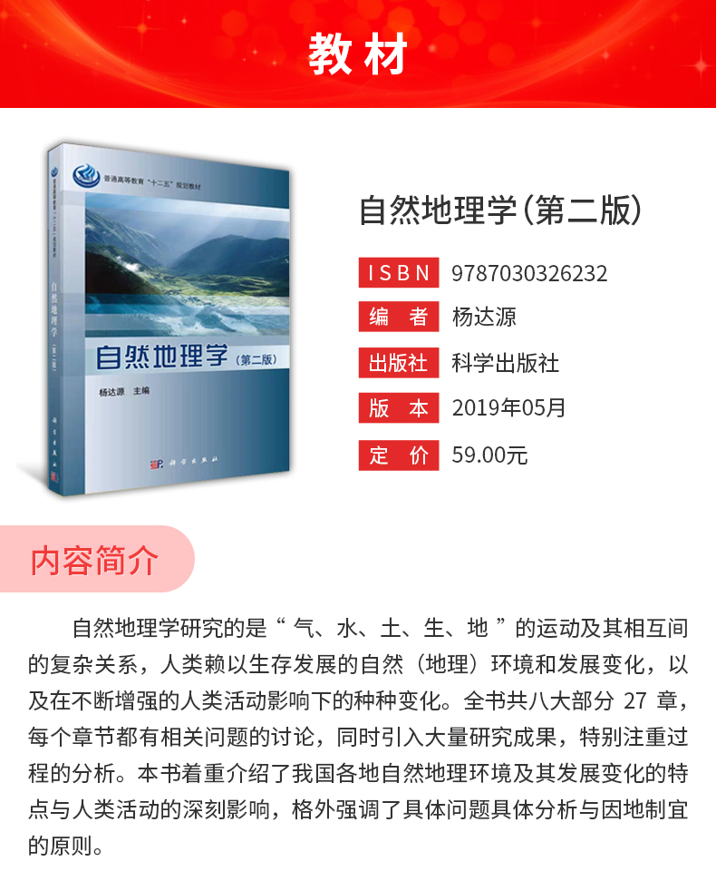 杨达源《自然地理学》(第2版)教材(科学出版社)