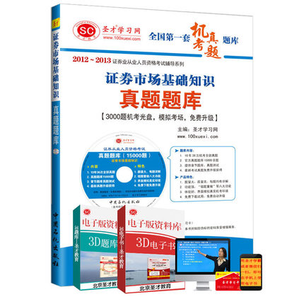 本题库是证券业从业人员资格考试“证券市场基础知识”科目的官方真题题库【3000题机考光盘,模拟考场,免费升级】。图书精选部分重要的真题及解析,而光盘提供全部官方真题题库上机考试,由三部分组成: