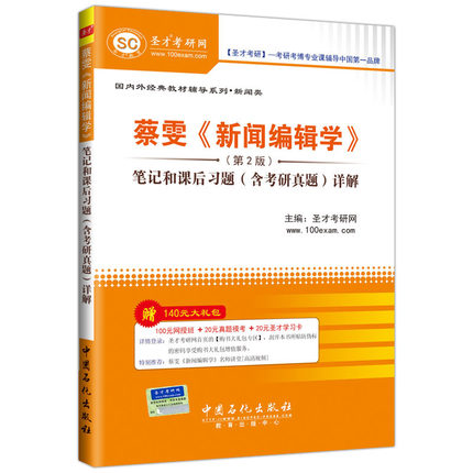 圣才考研网(www.100xuexi.com)是圣才学习网旗下的考研考博专业网站,提供全国所有院校各个专业的考研考博辅导班【保过班、一对一辅导、网授班、题库、光盘、视频课程(图书)等】、蔡雯《新闻编辑学》等国内外经典教材名师讲堂、考研题库(免费下载、免费升级)、全套资料(历年真题及答案、笔记讲义等)、考研教辅图书等。购书享受大礼包增值服务【100元网授班+20元真题模考+20元圣才学习卡】。
