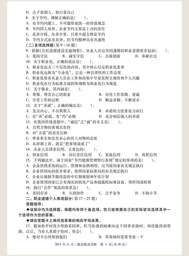 卷册一:职业道德 理论知识