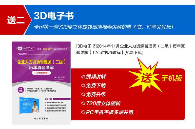 圣才学习网(www.100xuexi.com)拥有全国各种考试(学历、等级、职称资格等)和专业课(经管类、外语类、理工类等)辅导共计5万种3D电子书(题库)。圣才电子书(题库)采用“学习+社交+媒体”模式,可植入高清视频、动画漫画,自带互动聊天、直播功能,可720度立体旋转。