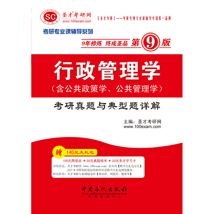 圣才考研网(www.100xuexi.com)是圣才学习网旗下的考研考博专业网站,提供全国所有院校各个专业的考研考博辅导班【保过班、一对一辅导、网授班、题库、光盘、视频课程(图书)等】、公共管理类国内外经典教材名师讲堂、考研题库(免费下载,免费升级)、全套资料(历年真题及答案、笔记讲义等)、考研教辅图书等。购书享受大礼包增值服务【100元网授班+20元真题模考+20元圣才学习卡】。
