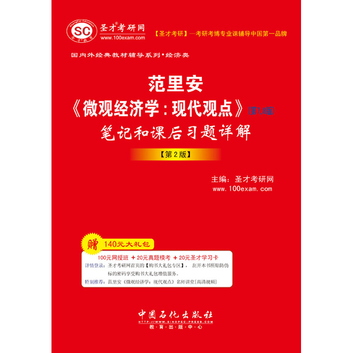 圣才考研网提供经济类国内外经典教材名师讲堂、全国各高校经济类专业考研考博辅导班【保过班、一对一辅导、题库(免费下载,免费升级)、视频课程(图书)等】(详情参见本书书前彩页)。随书赠送大礼包增值服务【100元网授班+20元真题模考+20元圣才学习卡】。本书特别适用于参加研究生入学考试指定考研参考书目为范里安所著的《微观经济学:现代观点》的考生,也可供各大院校学习微观经济学的师生参考。