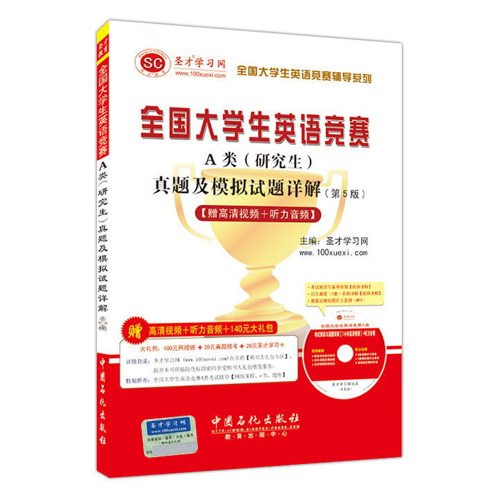 圣才学习网│英语类(www.100xuexi.com)提供全国大学生英语竞赛考试辅导方案【网络课程、e书、题库等】(详细介绍参见本书书前彩页)。随书赠送光盘【考试解读与真题详解(7小时高清视频)+听力音频】,并享受大礼包增值服务【100元网授班+20元真题模考+20元圣才学习卡】。本书特别适用于参加全国大学生英语竞赛的考生,对于参加其他英语类相关考试以及英语爱好者来说,本书也是一本不可多得的学习资料。