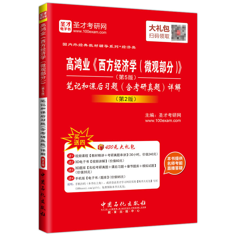圣才考研网(www.100xuexi.com)提供高鸿业《西方经济学(微观部分)》网授精讲班【教材精讲+考研真题串讲】、3D电子书、3D题库。购书享受大礼包增值服务【240元视频课程+60元3D电子书+35元3D题库+95元手机版电子书/题库】。本书提供名师考前直播答疑,手机电脑均可观看,直播答疑在考前推出(具体时间见网站公告)。手机扫码(本书封面的二维码),或者登录圣才学习网首页的【购书大礼包】专区(www.100xuexi.com/gift),免费领取本书大礼包。