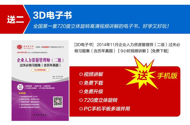 与本书相配套,圣才学习网提供企业人力资源管理师考试网授精讲班【教材精讲+真题串讲】及视频课程(图书)(详细介绍参见本书书前彩页)。