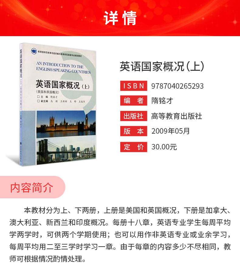 隋铭才《英语国家概况》(上册)教材(高等教育出版社)