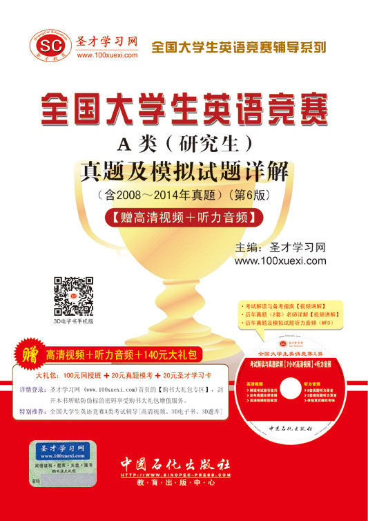 本书是专门为提高考生参加全国大学生英语竞赛A类(研究生)考试水平而编著的一本复习资料【赠高清视频+听力音频】。其内容包括11套真题 (2008~2014年)和3套模拟试题,每套试题均给出参考答案及详解。历年真题为考生提供了最好的复习依据,便于读者了解考题的命题特点和出题规律, 答案详解则为考生分析了解题技巧,指明了解题思路。模拟试题是根据最新一年(2014年)的真题及样题,在参考众多相关考试用书、国内外权威杂志以及优秀 论文等大量素材的基础上精心设计而成,具有很强的针对性和实用性。
