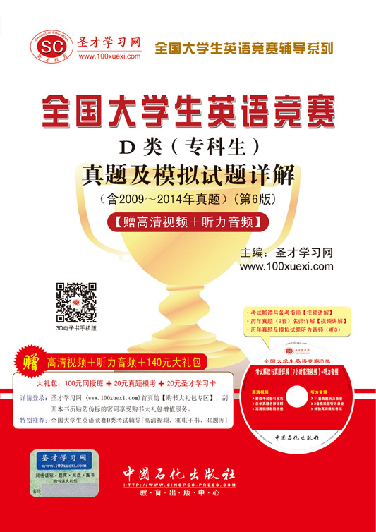 本书是专门为提高考生参加全国大学生英语竞赛D类(专科生)考试水平而编著的复习资料【赠高清视频+听力音频】。其内容包括11套真题 (2009~2014年)和3套模拟试题,每套试题均给出参考答案及详解。历年真题为考生提供了最好的复习依据,便于读者了解考题的命题特点和出题规律, 答案详解则为考生分析了解题技巧,指明了解题思路。模拟试题根据最新一年(2014年)的真题及样题,在参考众多相关考试用书、国内外权威杂志以及优秀论 文等大量素材的基础上精心设计而成,具有很强的针对性和实用性。