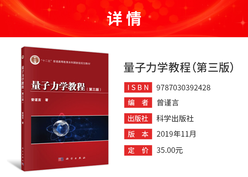 曾谨言《量子力学教程》(第3版)教材(科学出版社)