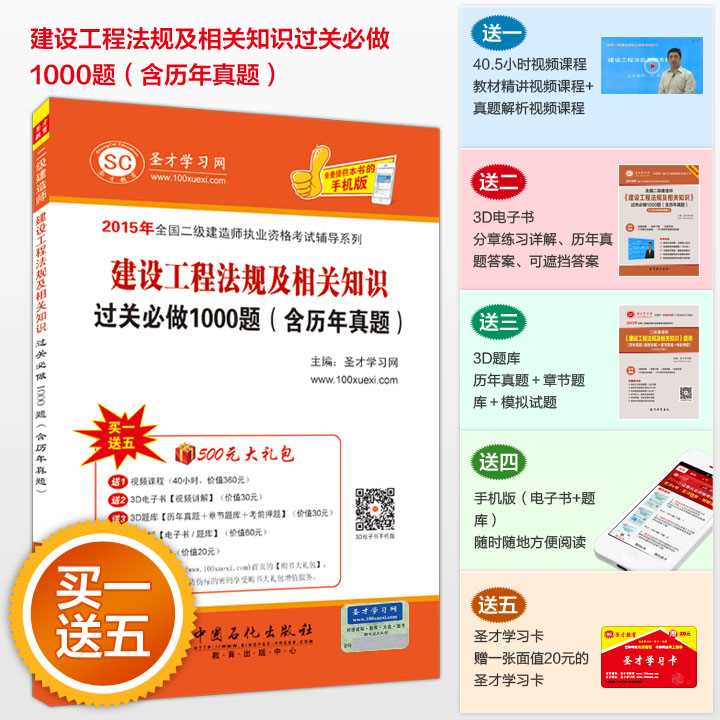 购买本书享受大礼包增值服务,登录圣才学习网(www.100xuexi.com),点击圣才学习网首页的大礼包【购书大礼包】,刮开所购图书封面防伪标的密码,即可享受大礼包增值服务。扫一扫本书封面的二维码,可免费下载本书手机版;摇一摇本书手机版,可找到所有学习本书的学友,交友学习两不误。本书提供名师考前直播答疑,手机电脑均可观看,直播答疑在考前推出(具体时间见网站公告)。