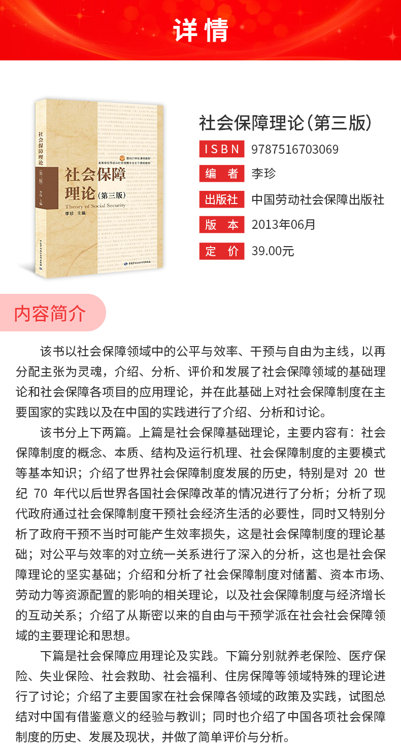 李珍《社会保障理论》(第3版)教材(中国劳动社会保障出版社)