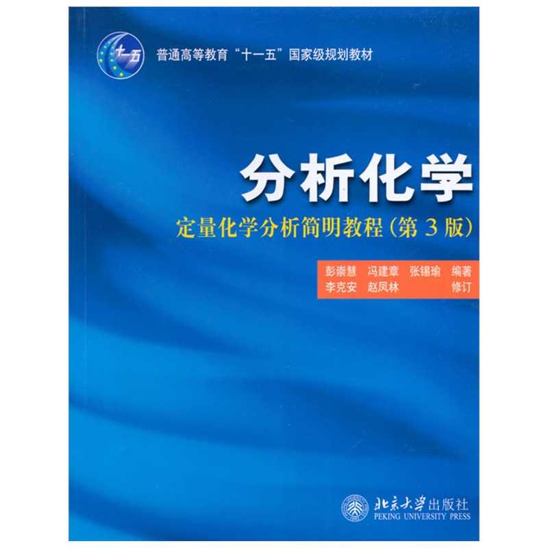 分析化学是化学类、生物类、医药类、环境类和材料类等专业本科生的必修基础课。本书可作为以上各专业的教材。 本书第3版是在1997年问世的第2版的基础上,根据教学经验和教学内容的改进作了修订,保持了简明这一特点。其内容包括滴定分析法、沉淀重量分析法、分光光度法、分子荧光和磷光分析法、原子吸收光谱法,电位分析法、色谱法等常用分析方法和分析数据的统计处理、分析化学中常用分离方法等。本书的有关计算均采用了法定计量单位。 本书可作为理、工、农、医、师范类分析化学课的教材或教学参考书。也可供从事分析测试工作的其他科技人员参考。