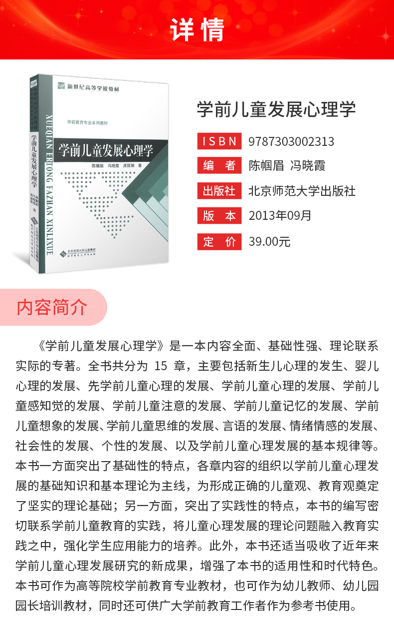 陈帼眉《学前儿童发展心理学》教材(北京师范大学出版社)