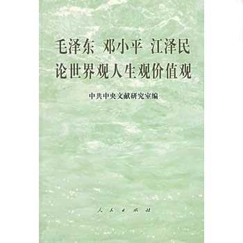 毛泽东论世界观、人生观、价值观 关于纠正党内的错误思想(节选)(一九二九年十二月) 反对本本主义(节选)(一九三○年五月) 要深刻注意群众生活问题(一九三四年一月二十七日) 主观必须与客观相符合(一九三六年十二月) 为徐特立六十岁生日写的贺信(一九三七年一月三十日) 党的干部要为民族、为阶级、为党而工作(一九三七年五月八日) 实践的观点是辩证唯物论的认识论之第一的和基本的观点(一九三七年七月) 离开实践的认识是不可能的(一九三七年七月) 改造客观世界,也改造自己的主观世界(一九三七年七月) 两种宇宙观(一九三七年八月) 《矛盾论》结论(一九三七年八月) 反对自由主义(一九三七年九月七日) 论鲁迅(一九三七年十月十九日) 必须把勇敢精神与谨慎精神联系起来(一九三七年十月二十五日) 为中华民族的解放,为建设新中国勇往直前(一九三八年四月九日) 必须充分发挥人的主观能动作用(一九三八年五月) 共产党员在民族战争中的模范作用(一九三八年十月十四日) 学习马克思主义和历史遗产(一九三八年十月十四日) 知识青年要和工农群众结合成一体(一九三九年五月四日) …… 邓小平论世界观、人生观、价值观 江泽民论世界观、人生观、价值观