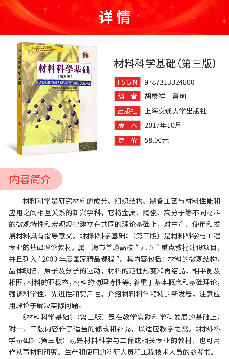 胡赓祥《材料科学基础》(第3版)教材(上海交通大学出版社)