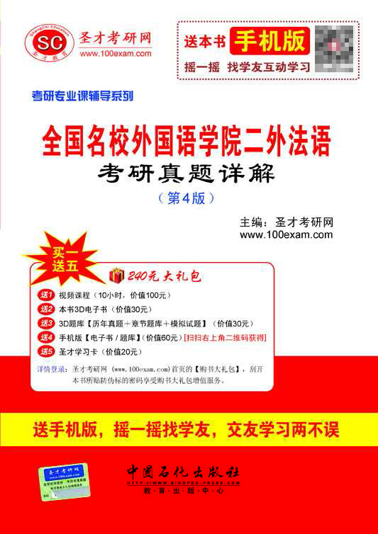 购买本书享受大礼包增值服务,手机扫描本书封面大礼包二维码或登录圣才学习网(www.100xuexi.com),刮开所购图书封面防伪标的密码,即可享受大礼包增值服务:①视频课程(价值100元);②本书3D电子书(价值30元);③3D题库【名校考研真题+经典教材课后习题+章节题库+模拟试题】(价值30元);④手机版【电子书/题库】(价值60元);⑤圣才学习卡(价值20元),可在圣才学习网旗下所有网站进行消费。扫一扫本书封面的二维码,可免费下载本书手机版;摇一摇本书手机版,可找所有学习本书的学友,交友学习两不误。