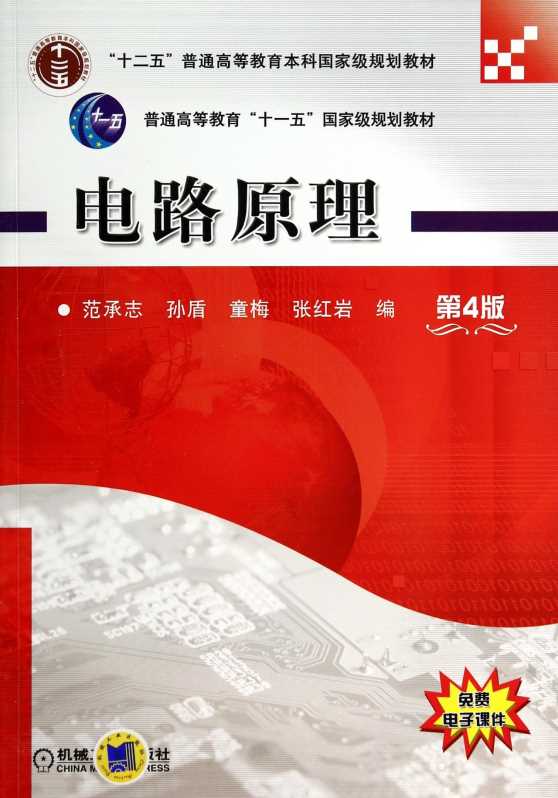 由范承志、孙盾、童梅、张红岩编的《电路原理(第4版)》以电气信息类学生拓宽专业口径为立足点,兼顾强电和弱电类专业的共同需求。本书较全面地介绍了经典电路原理知识和现代电路理论的相关内容,注重与后续课程之间的衔接,同时展示了部分电路的实际应用背景。 本书主要内容包括:电路概述;电路分析的基本方法及定理;正弦交流电路;谐振、互感及三相交流电路;双口网络;非正弦周期电路分析;网络矩阵方程;过渡过程的经典解法;拉普拉斯变换法、积分法和状态变量法;分布参数电路;非线性电路等。 本书适合普通高等学校电气信息类(强、弱电)各专业师生使用,也可作为非电类高年级学生、研究生和教师的参考书。 本书配有免费电子课件,欢迎选用本书作教材的老师登录ww.empedu.com注册下载或发邮件到xufan666@163.com索取。