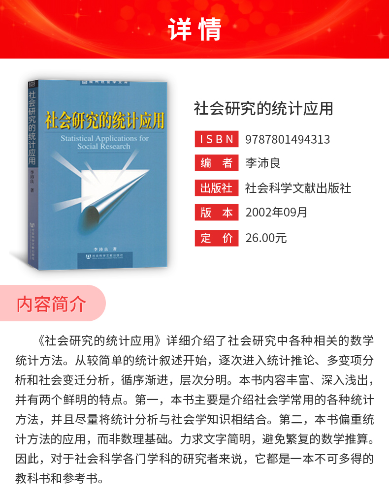 李沛良《社会研究的统计应用》教材(社会科学文献出版社)