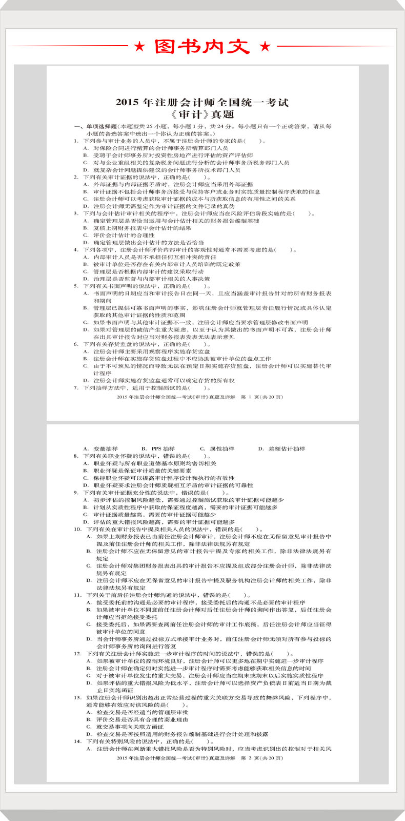2014年注册会计师全国统一考试《审计》真题及详解