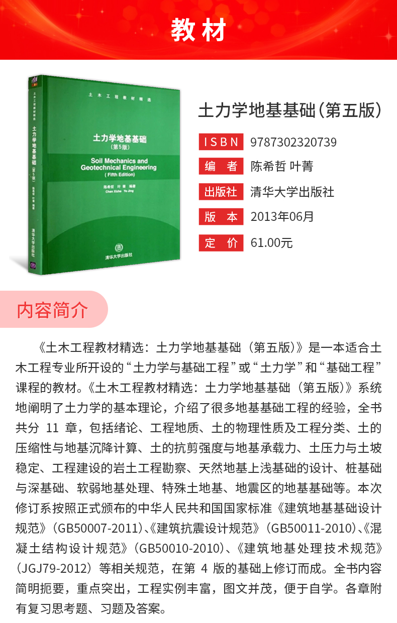 陈希哲《土力学地基基础》(第5版)教材(清华大学出版社)