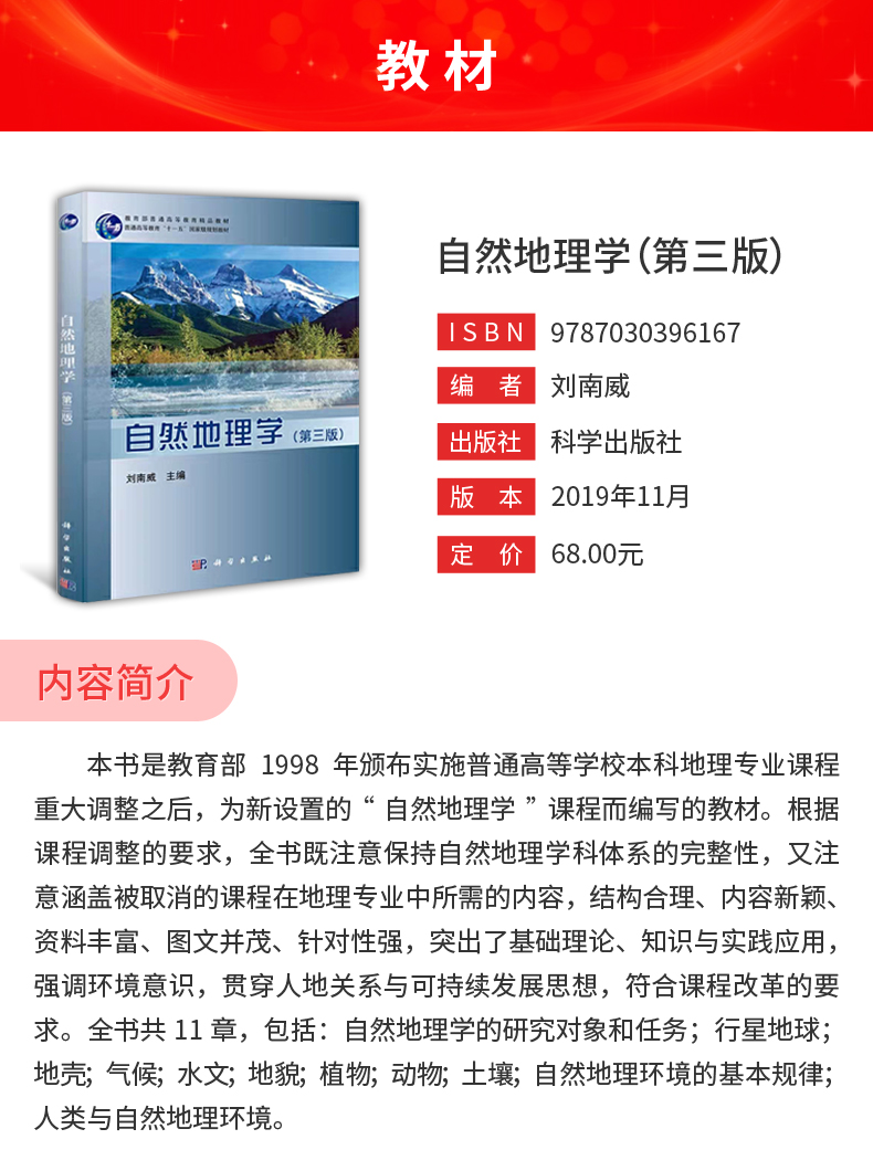 刘南威《自然地理学》(第3版)教材(科学出版社)