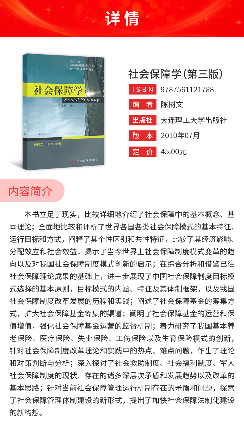 陈树文《社会保障学》(第3版)教材(大连理工大学出版社)