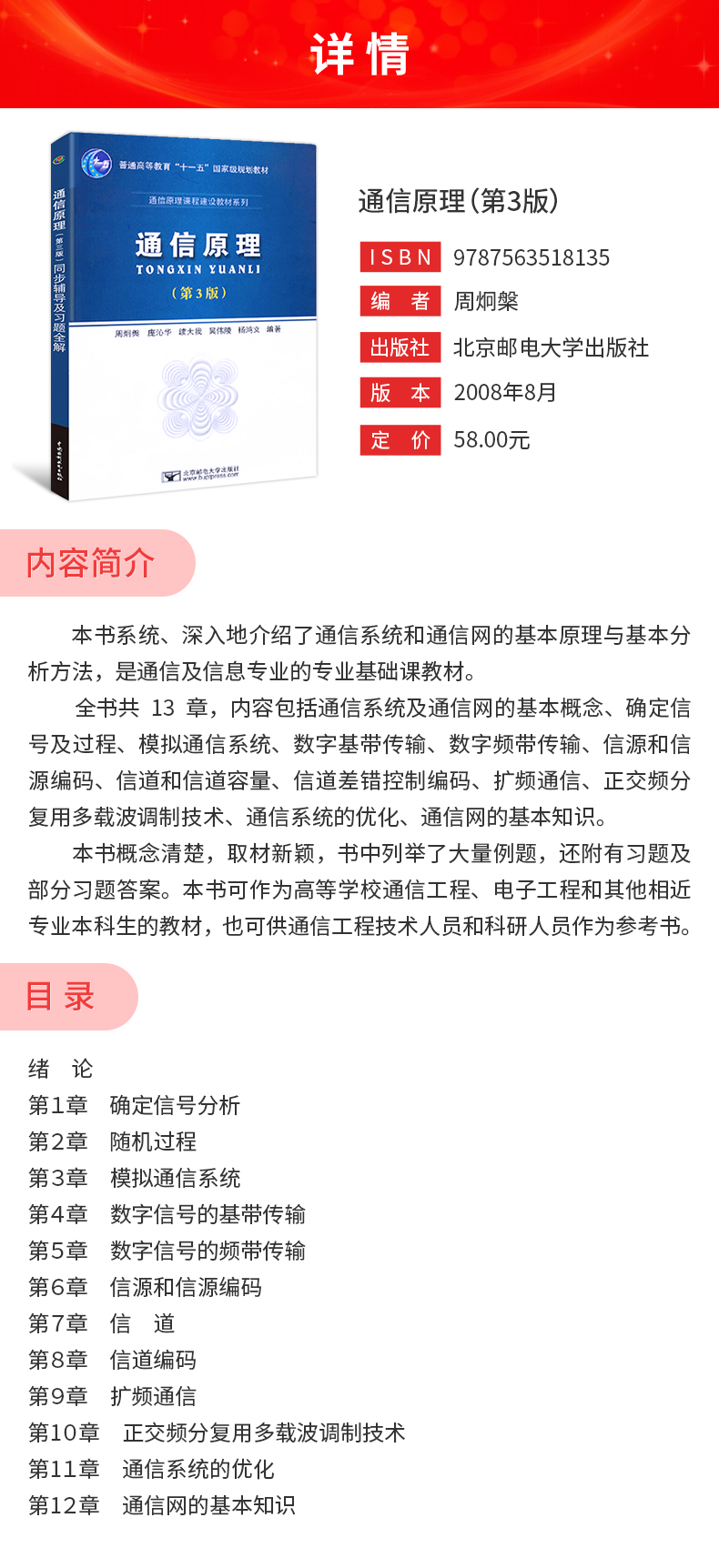 周炯槃《通信原理》(第3版)教材(北京邮电大学出版社)