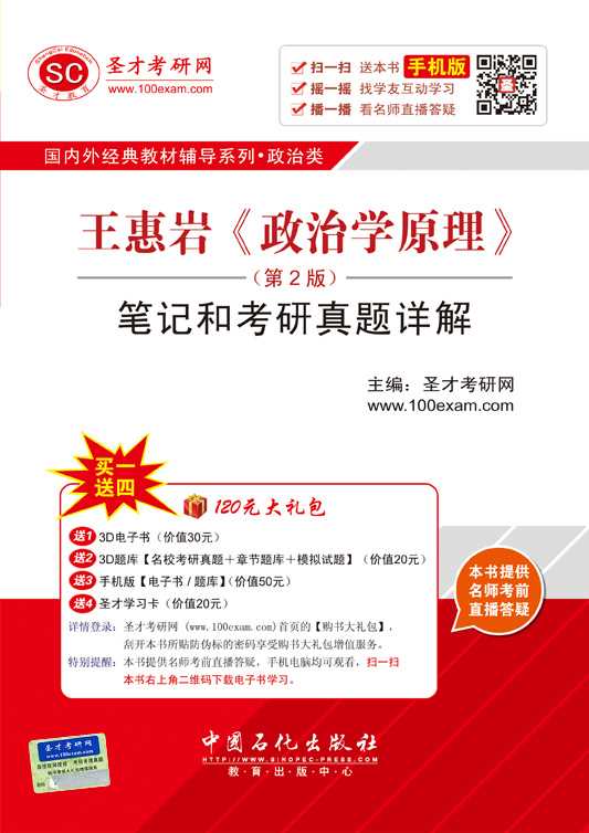 圣才考研网(www.100xuexi.com)提供王惠岩《政治学原理》网授精讲班【教材精讲+考研真题串讲】、3D电子书、3D题库(详细介绍参见本书书前彩页)。随书赠送大礼包增值服务【50元3D电子书(题库)+50元手机版电子书(题库)+20元圣才学习卡】。扫一扫本书封面的二维码,可免费下载本书手机版;摇一摇本书手机版,可找到所有学习本书的学友,交友学习两不误;本书提供名师考前直播答疑,手机电脑均可观看,直播答疑在考前推出(具体时间见网站公告)。