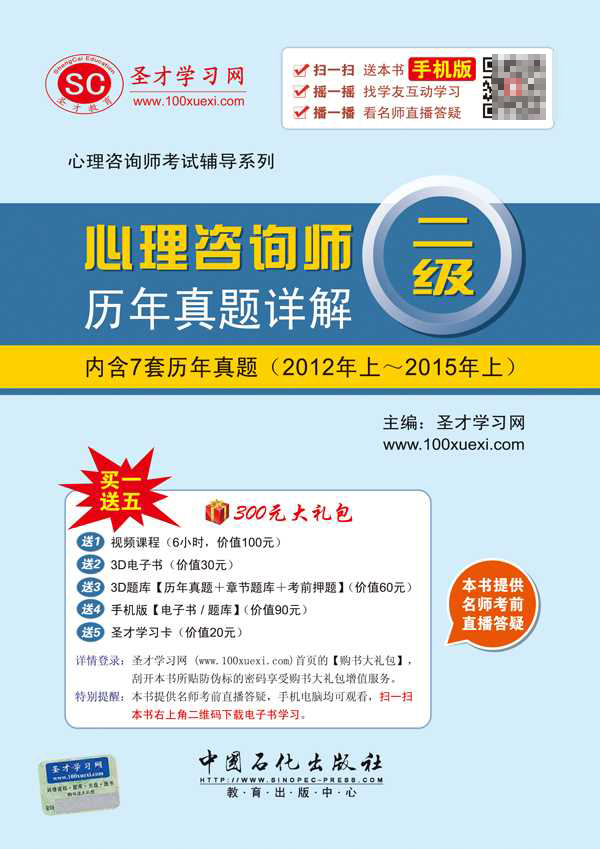 购买本书享受大礼包增值服务,登录圣才学习网(www.100xuexi.com),点击圣才学习网首页的大礼包【购书大礼包】,刮开所购图书封面防伪标的密码,即可享受大礼包增值服务。扫一扫本书封面的二维码,可免费下载本书手机版;摇一摇本书手机版,可找到所有学习本书的学友,交友学习两不误。本书提供名师考前直播答疑,手机电脑均可观看,直播答疑在考前推出(具体时间见网站公告)。