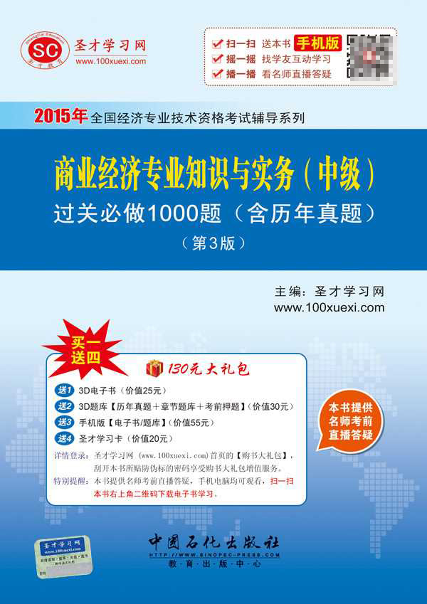 圣才学习网(www.100xuexi.com)提供经济师等各种职称资格考试辅导方案【网络课程、3D电子书、3D题库等】(详细介绍参见本书书前彩页)。购书享受大礼包增值服务【55元3D电子书(题库)+55元手机版电子书(题库)+20元圣才学习卡】。扫一扫本书封面的二维码,可免费下载本书手机版;摇一摇本书手机版,可找到所有学习本书的学友,交友学习两不误;本书提供名师考前直播答疑,手机电脑均可观看,直播答疑在考前推出(具体时间见网站公告)。