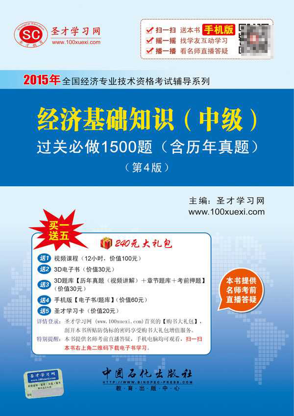 圣才学习网(www.100xuexi.com)提供全国经济专业技术资格考试辅导方案【网络课程、3D电子书、3D题库等】(详细介绍参见本书书前彩页)。购书享受大礼包增值服务【100元视频课程+60元3D电子书(题库)+60元手机版电子书(题库)+20元圣才学习卡】。扫一扫本书封面的二维码,可免费下载本书手机版;摇一摇本书手机版,可找所有学习本书的学友,交友学习两不误;本书提供名师考前直播答疑,手机电脑均可观看,直播答疑在考前推出(具体时间见网站公告)。