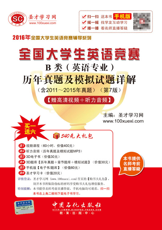 购买本书享受大礼包增值服务,登录圣才学习网(www.100xuexi.com),点击圣才学习网首页的大礼包【购书大礼包】,刮开所购图书封面防伪标的密码,即可享受大礼包增值服务。扫一扫本书封面的二维码,可免费下载本书手机版;摇一摇本书手机版,可找到所有学习本书的学友,交友学习两不误。本书提供名师考前直播答疑,手机电脑均可观看,直播答疑在考前推出(具体时间见网站公告)。