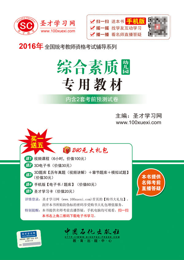 购买本书享受大礼包增值服务,登录圣才学习网(www.100xuexi.com),刮开所购图书封面防伪标的密码,即可享受大礼包增值服务:① 6小时真题解析班(价值100元);②本书3D电子书(价值30元);③ 3D题库【历年真题(视频讲解)+章节题库+模拟试题】(价值30元);④手机版【电子书/题库】(价值60元);⑤圣才学习卡(价值20元),可在圣才学习网旗下所有网站进行消费。扫一扫本书封面的二维码,可免费下载本书手机版;摇一摇本书手机版,可找所有学习本书的学友,交友学习两不误;本书提供名师考前直播答疑,手机电脑均可观看,直播答疑在考前推出(具体时间见网站公告)。
