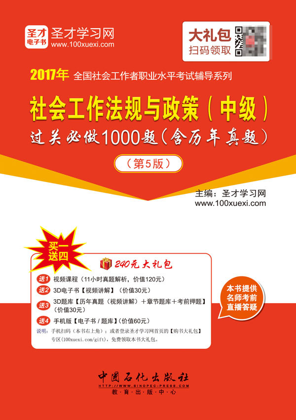 圣才学习网(www.100xuexi.com)提供社会工作者等各种职业资格类考试辅导方案【视频课程、3D电子书、3D题库等】。购书享受大礼包增值服务【120元视频课程+30元3D电子书+30元3D题库+60元手机版电子书/题库】。本书提供名师考前直播答疑,手机电脑均可观看,直播答疑在考前推出(具体时间见网站公告)。手机扫码(本书封面的二维码),或者登录圣才学习网首页的【购书大礼包】专区(www.100xuexi.com/gift),免费领取本书大礼包。